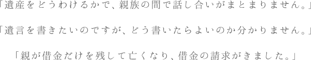 遺言書の作成は、弁護士以外の様々な専門家がアドバイスをしていますが、相続に関わる様々な紛争について、裁判所の手続きに実際に関わっているのは弁護士だけです。その中で、どのようにすれば、紛争を防止できるのか、被相続人の死後の希望を叶えるにはどうすればよいか弁護士は熟知しています。 - 遺留分